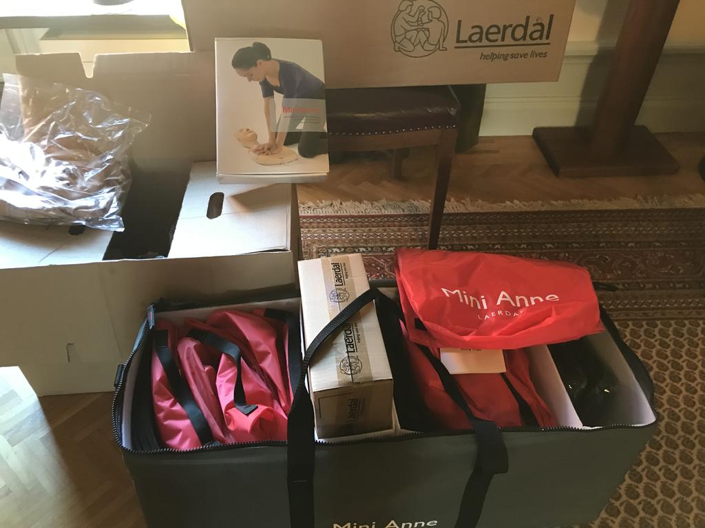 39 mini-Anne, små HLR-dockor, skickas till Ukraina. Foto: Privat