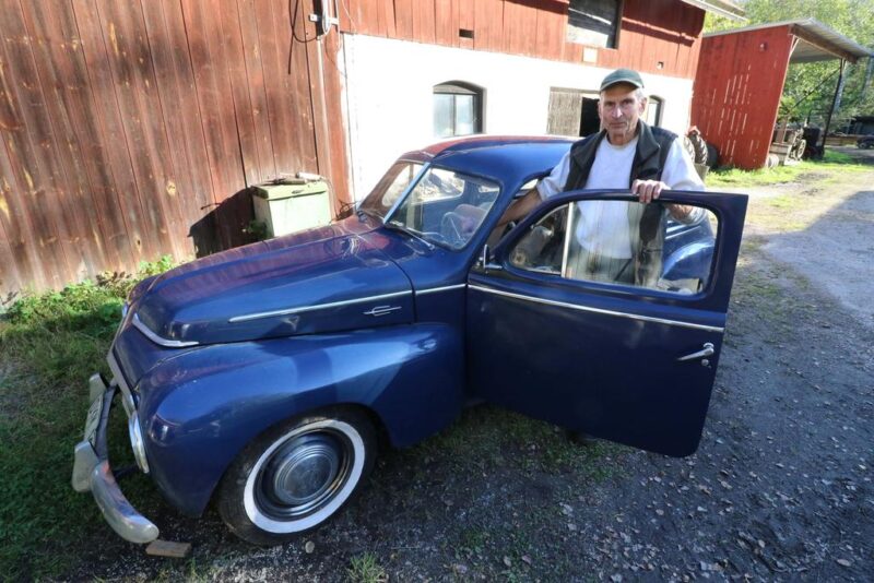 Kjell med sin Volvo PV 444 från 1957 i patinerat bruksskick. Foto: Peter Eriksson