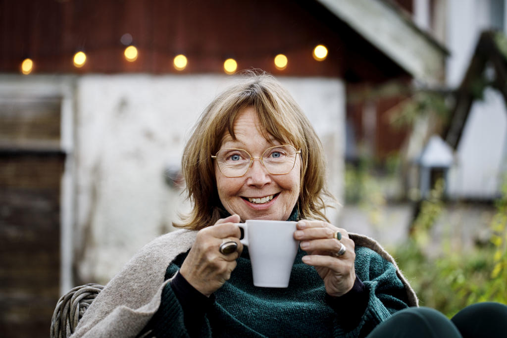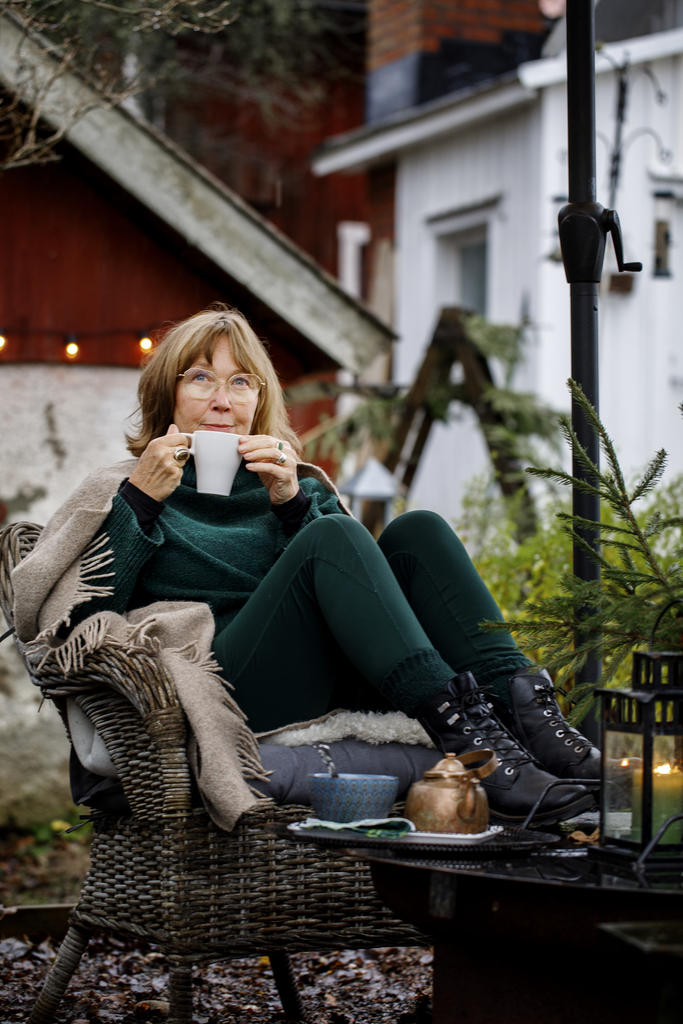 Varje morgon under 2025 har Kristina yogat och sedan utfört sin morgonritual med kaffe och gröt. Är det kyligt ute pälsar hon på sig. Sedan väljer hon en plats i trädgården och i tystnad intar hon sin frukost.